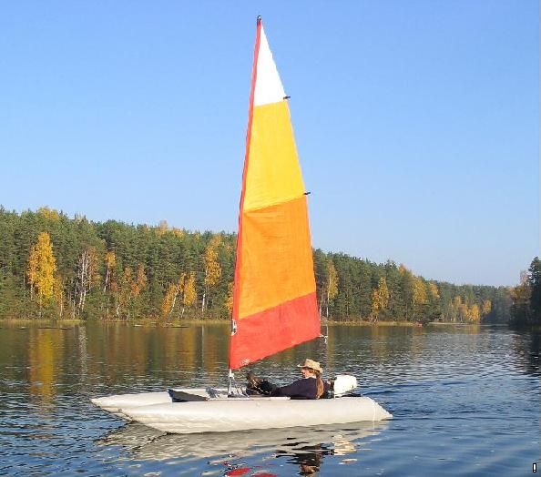 Данная модель совмещает в себе возможности гребной лодки, парусного катамарана и моторной лодки.